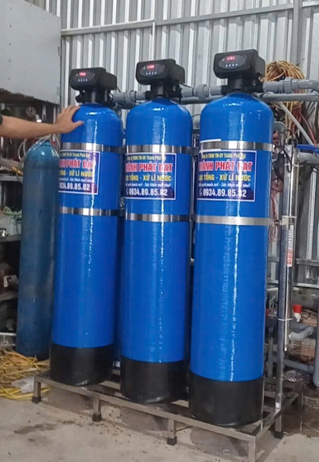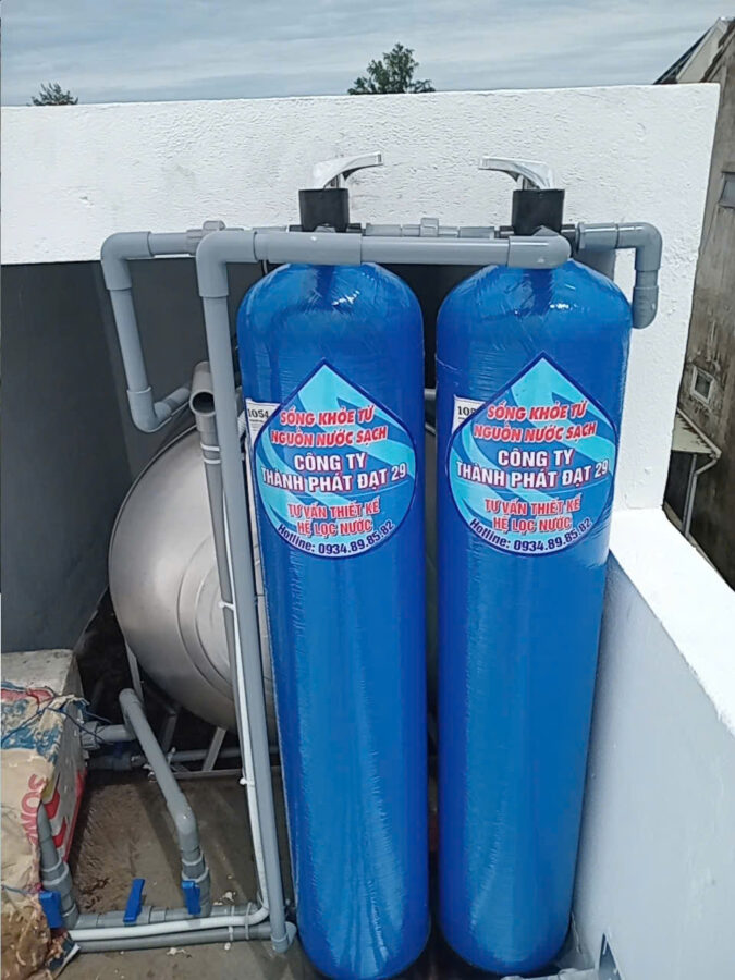 Cột Lọc Phèn (Cát Mangan, Than Hoạt Tính): Đây là khâu then chốt. Cột này có nhiệm vụ oxy hóa và kết tủa hàm lượng Sắt (Fe) và Mangan (Mn) vượt mức cho phép.